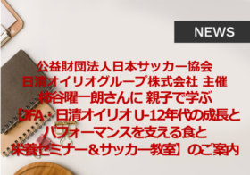 【JFA・日清オイリオ U-12年代の成長とパフォーマンスを支える食と栄養セミナー&サッカー教室】のご案内